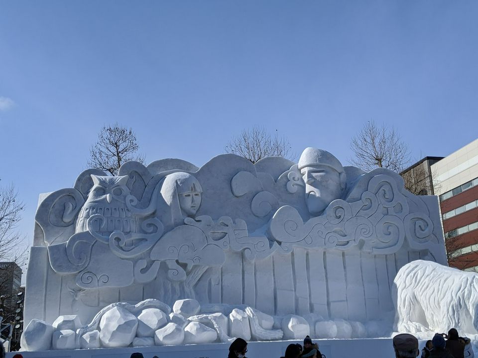 Boneka salju dalam bahasa jepang. Anak anak bermain salju di yeti resort kaki gunung fuji. Dalam ilustrasi tahun 1867 manusia salju dikelilingi oleh anak anak. Dalam bahasa jepang boneka disebut dengan ningyou yang terdiri atas kanji nin 人 yang berarti orang dan kanji gyou 形 yang berarti bentuk. Berulang kali mereka bergantian bermain papan seluncur dari titik tertinggi hingga titik terendah.