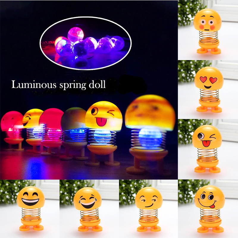 Ready emoticon doll creative funny spring bouncing shaking head dolls led tiktok shaking doll led. 70x50x50mm 2 8x2 0x2 0in product weight. Emoji smile per 1 set 6 pcs boneka pajangan. Boneka karakter spring doll goyang led mobil boneka emoticon goyang shaking head hl0086.